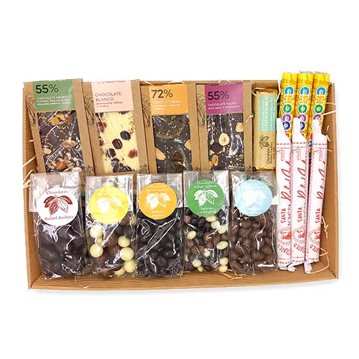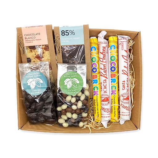 Cesta grande: 5 delicias, 4 tabletas, 1 barrita, 3 bollets y 3 choco-leche